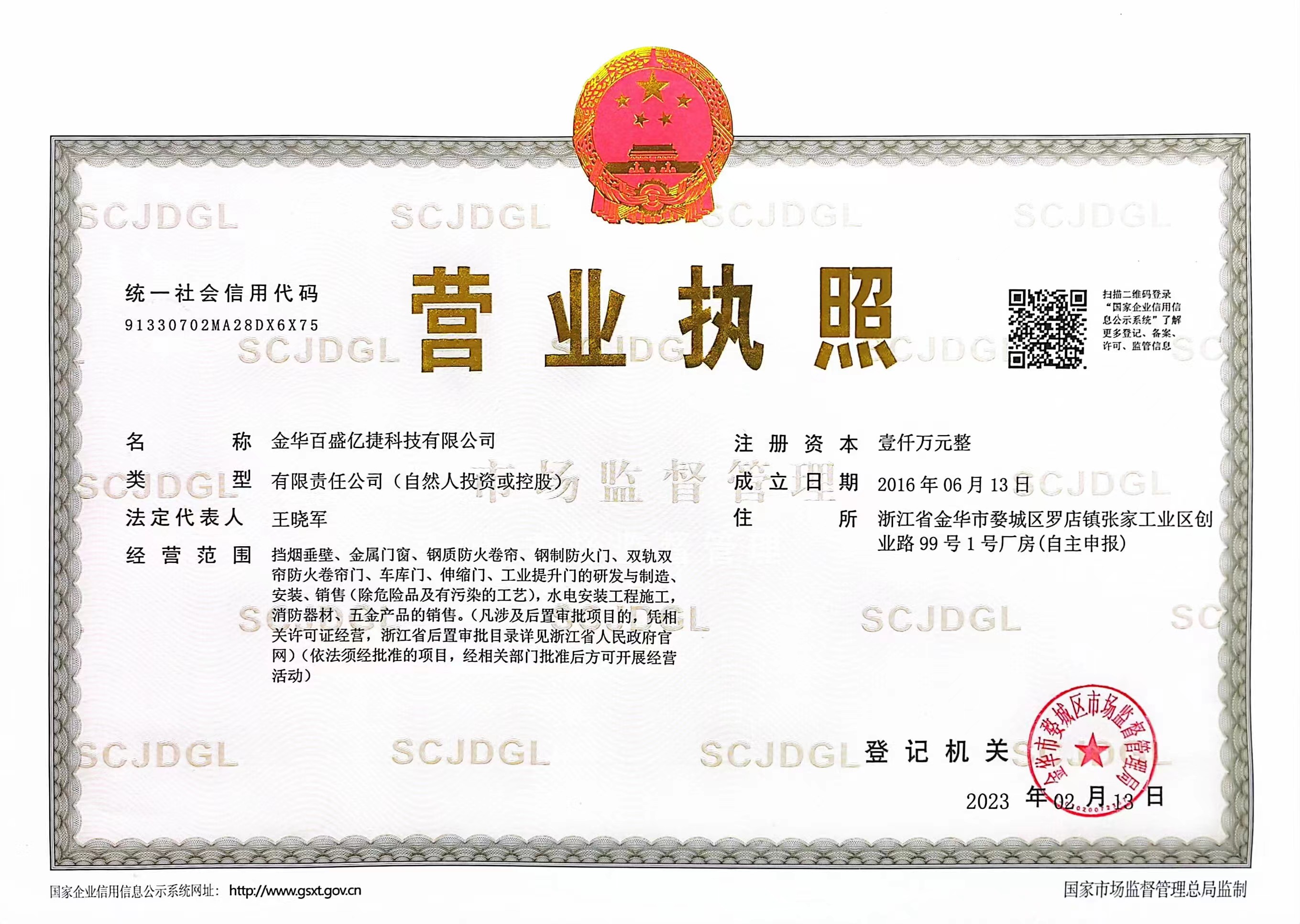 金華百盛億捷科技有限公司是一家銷(xiāo)售、安裝、維修服務(wù)為一體的現(xiàn)代化企業(yè),經(jīng)營(yíng)產(chǎn)品有:自動(dòng)感應(yīng)門(mén)、鋼制防火卷簾、鋼制防火門(mén)、雙軌雙簾防火卷簾門(mén)、電動(dòng)卷簾門(mén)、玻璃感應(yīng)門(mén)、電動(dòng)水晶門(mén),自動(dòng)伸縮門(mén)、道閘、不銹鋼卷簾門(mén)、翻板車(chē)庫(kù)門(mén)、不銹鋼卷閘門(mén)等十幾個(gè)品種等系列產(chǎn)品;本公司以"質(zhì)量開(kāi)拓市場(chǎng),以誠(chéng)信贏得市場(chǎng),以優(yōu)質(zhì)服務(wù)鞏固市場(chǎng)"為宗旨。注重產(chǎn)品質(zhì)量和細(xì)節(jié),不斷完善產(chǎn)品的售后服務(wù)。本公司擁有一批專(zhuān)業(yè)技術(shù)人員,培養(yǎng)了一批熟練的技工,員工具有豐富的安裝經(jīng)驗(yàn),產(chǎn)品造型美觀大方、新穎獨(dú)特,價(jià)位合理,安全實(shí)用 ,歡迎廣大新老客戶來(lái)電動(dòng)詳詢。